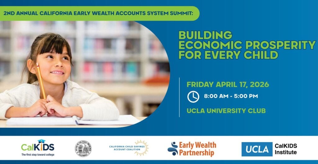 Join us at the Second Annual California Early Wealth Account System (CEWAS) Summit on April 17, 2026 at UCLA to explore how early wealth accounts are expanding opportunities for California children and families.